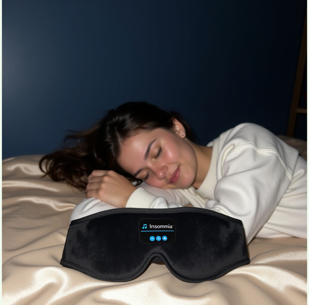 Le masque Insommia intègre un système audio discret. Vous pouvez connecter le masque via Bluetooth à votre smartphone ou tout autre appareil compatible pour écouter vos sons ou musiques préférées. Il est parfait pour les bruits blancs, les sons apaisants ou la méditation guidée, créant une atmosphère de relaxation complète.